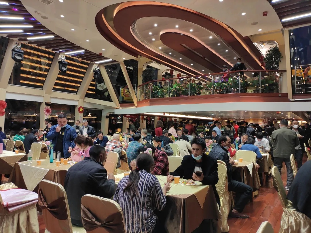 2月12日的大年初一晚上,爱游戏体育平台官网集团租下了5条船,与中建三局、八局共同组织留穗过年的800位务工人员参加珠江夜游。